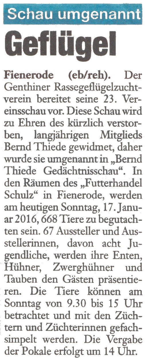 Geflügelausstellung Bericht vom 16. Januar 2009
