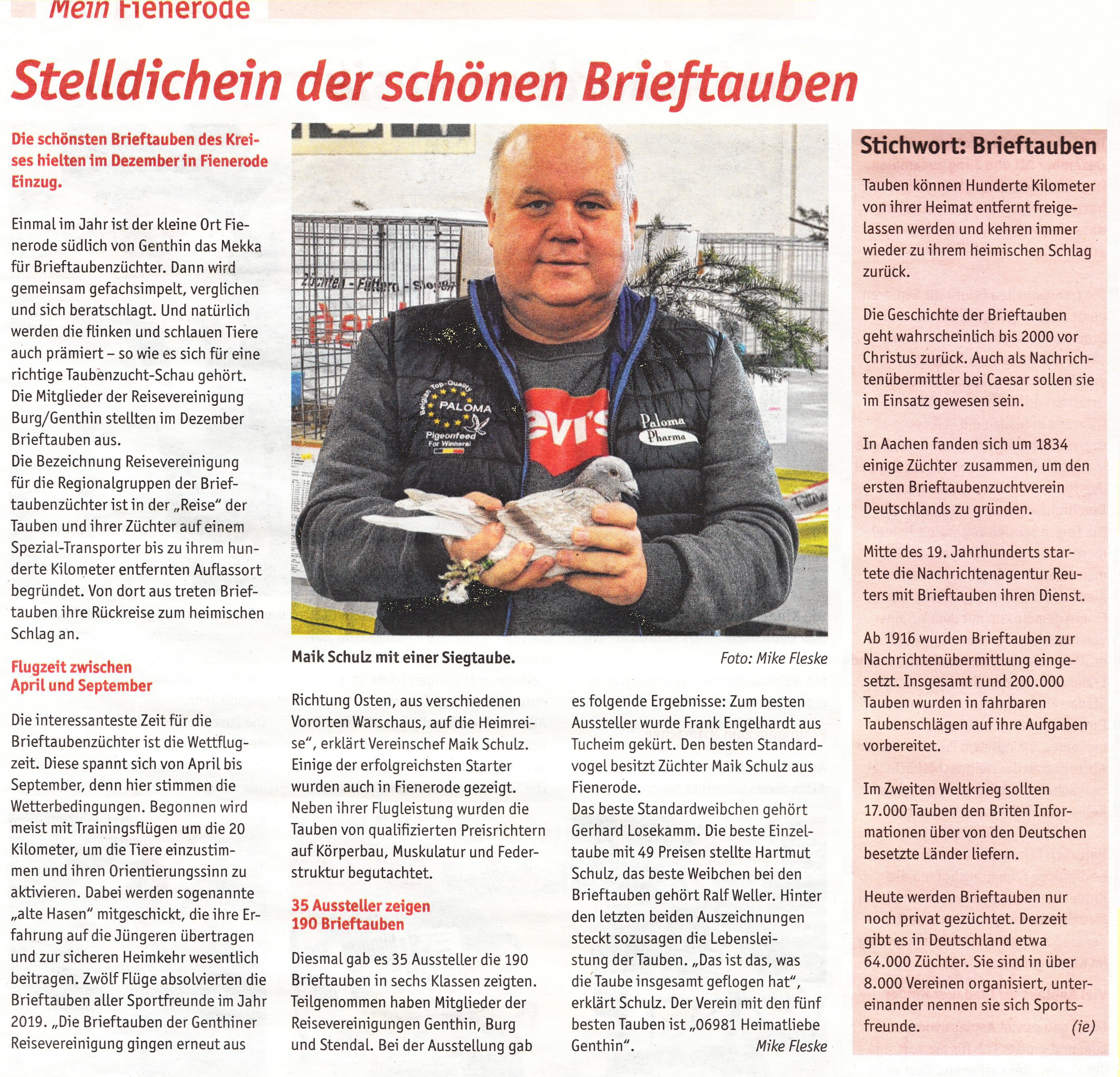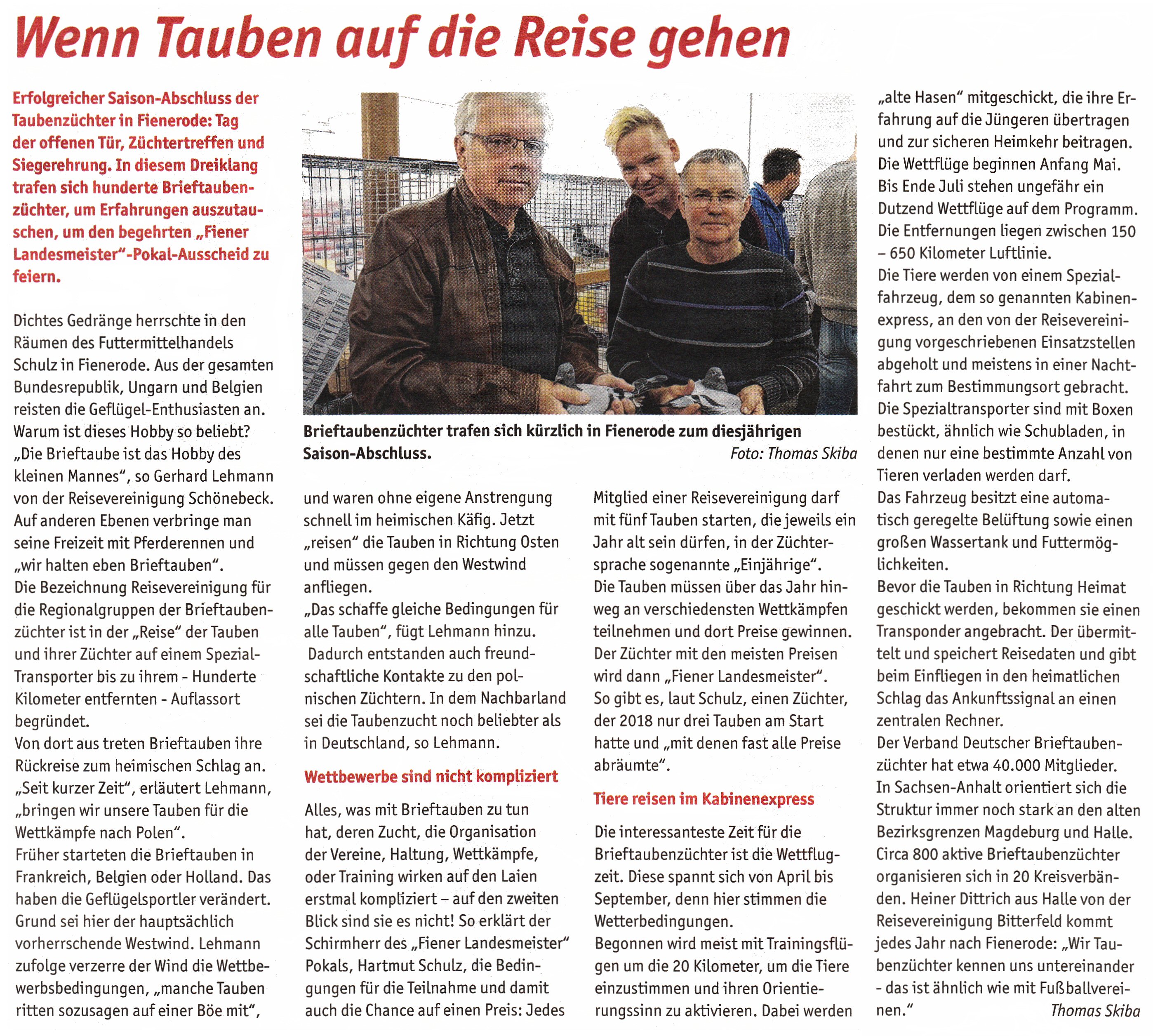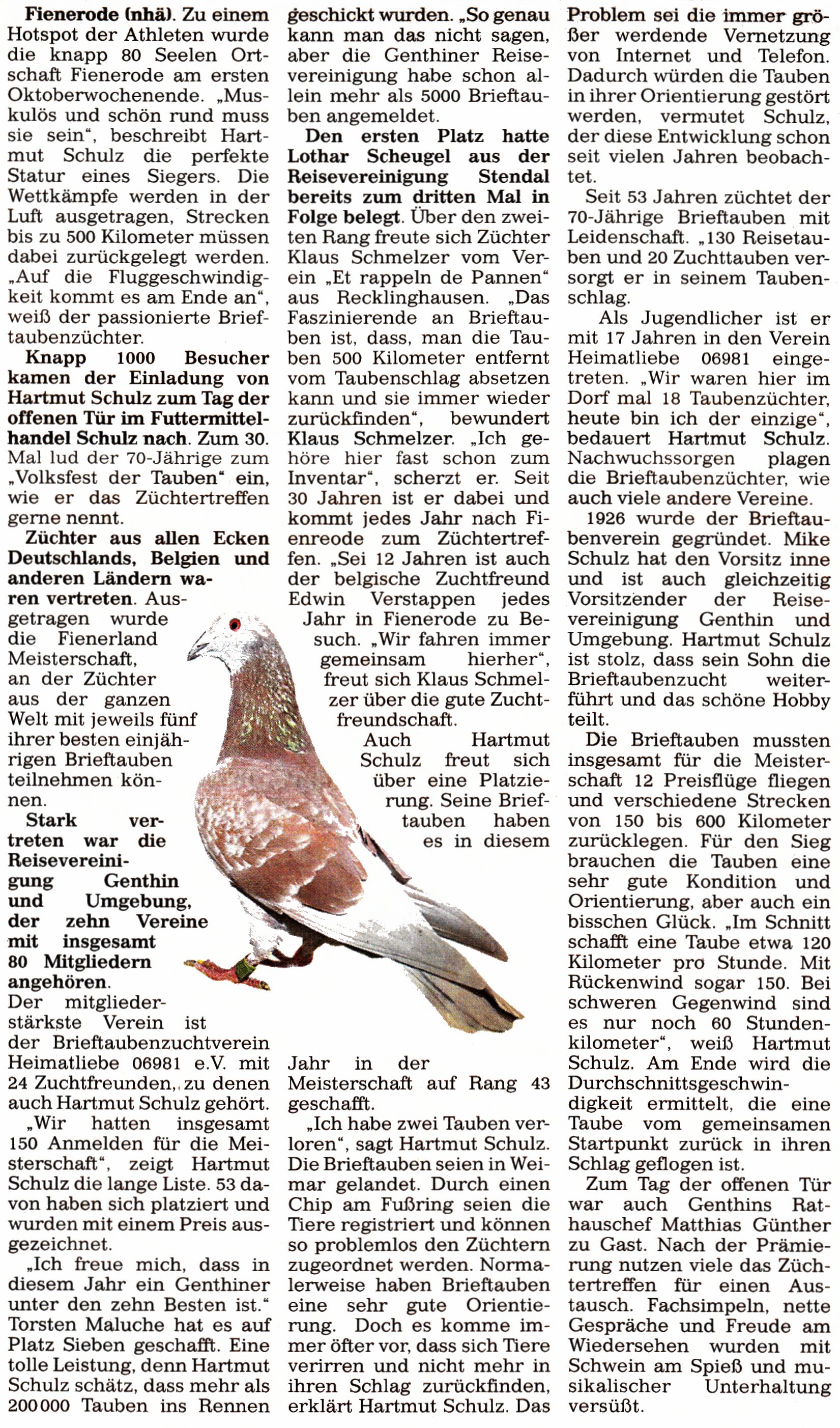 In Fienerode werden schnelle Brieftauben gezeigt.