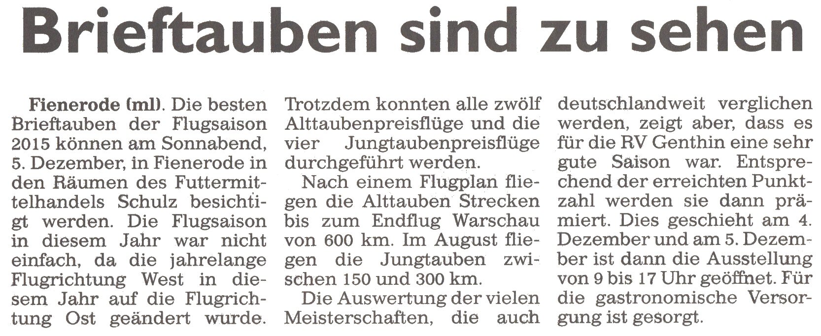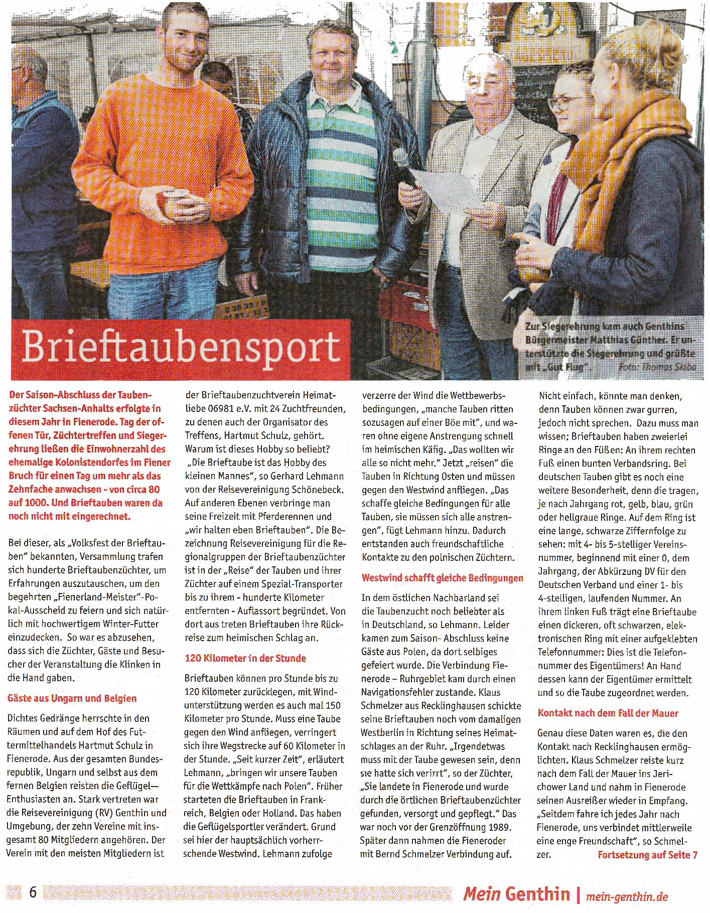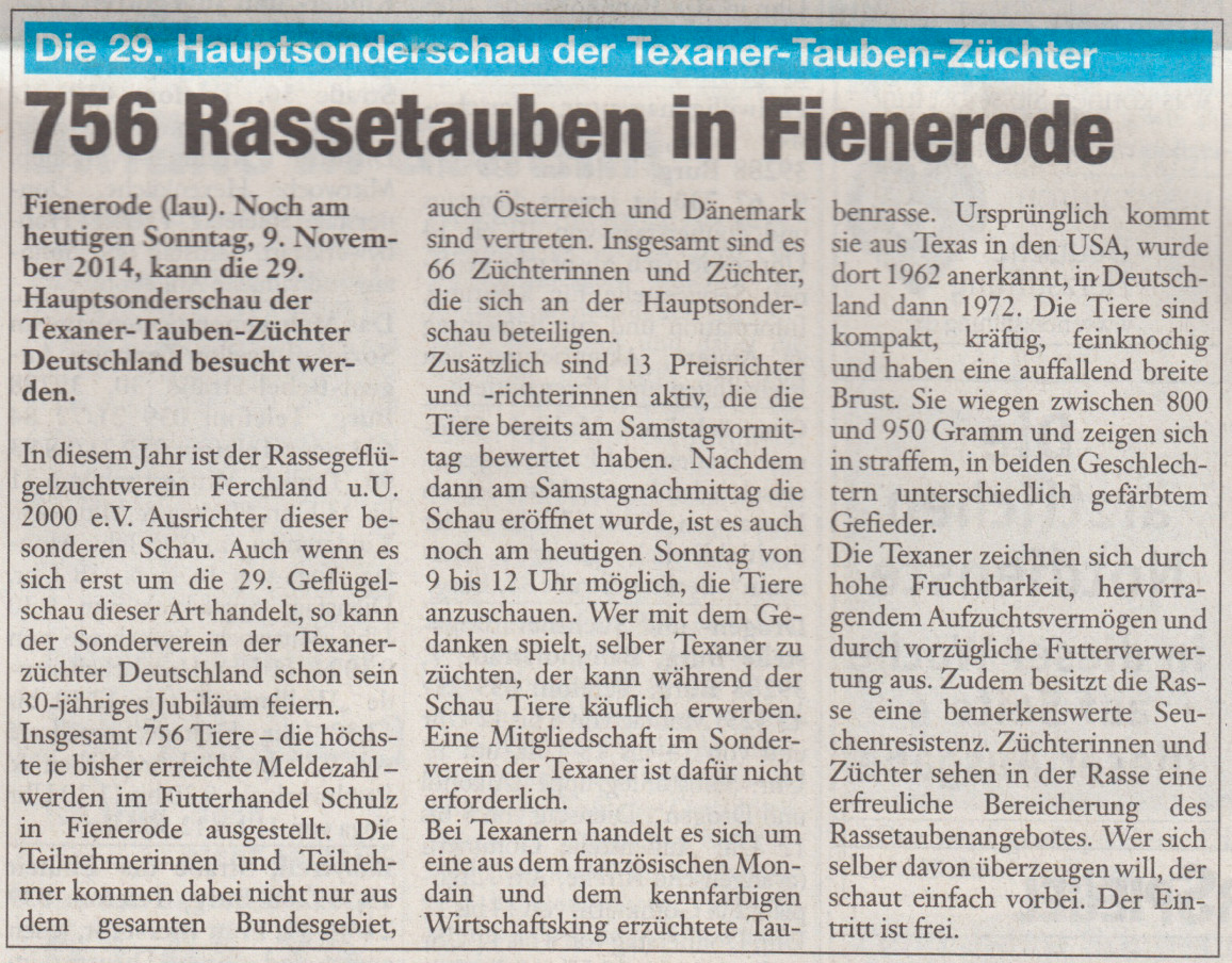 In Fienerode werden schnelle Brieftauben gezeigt.
