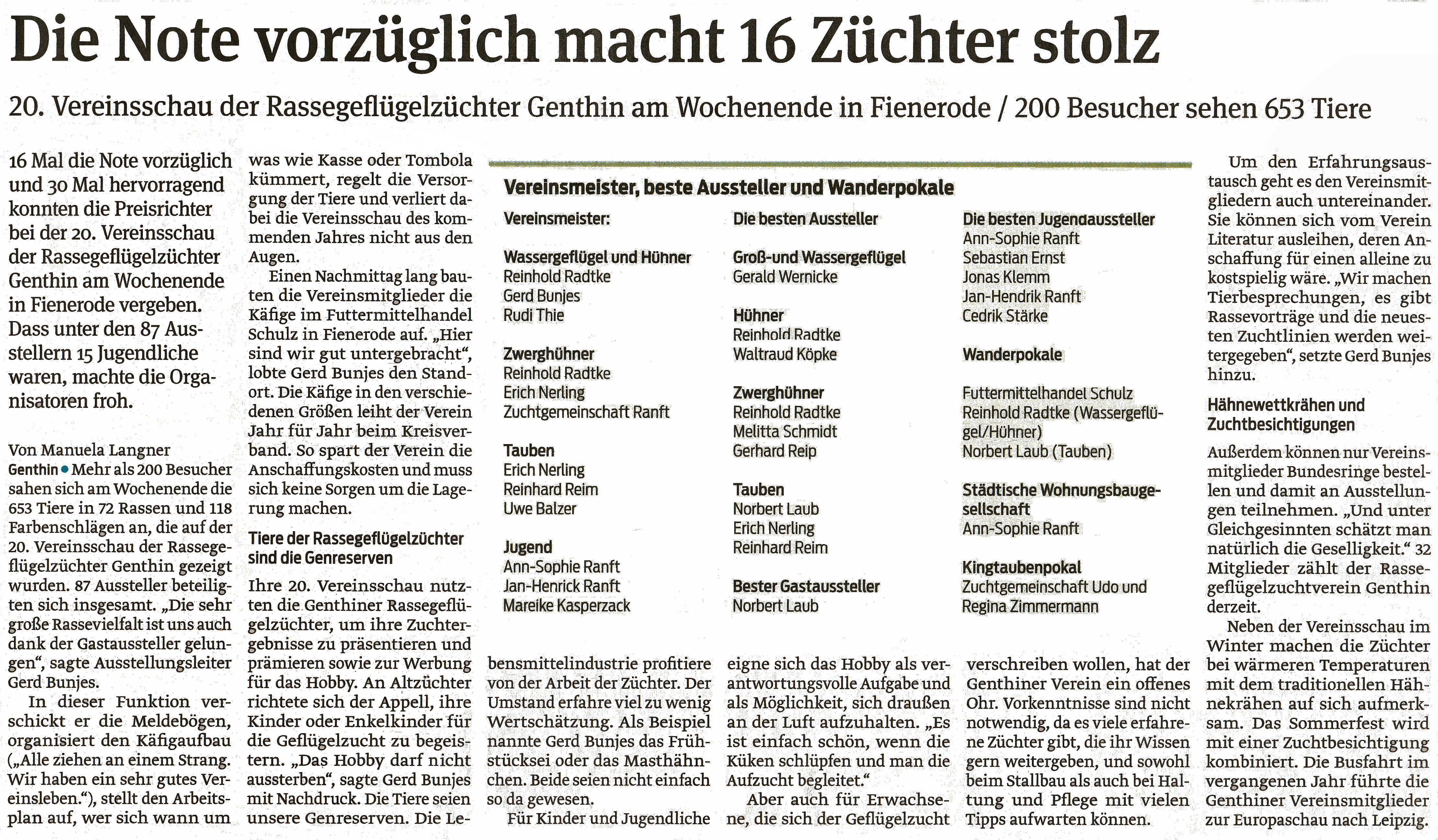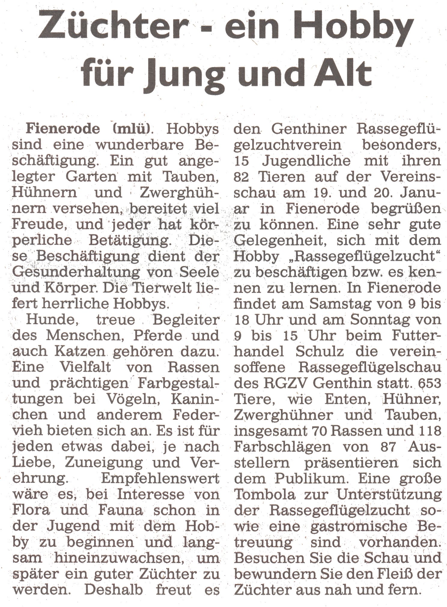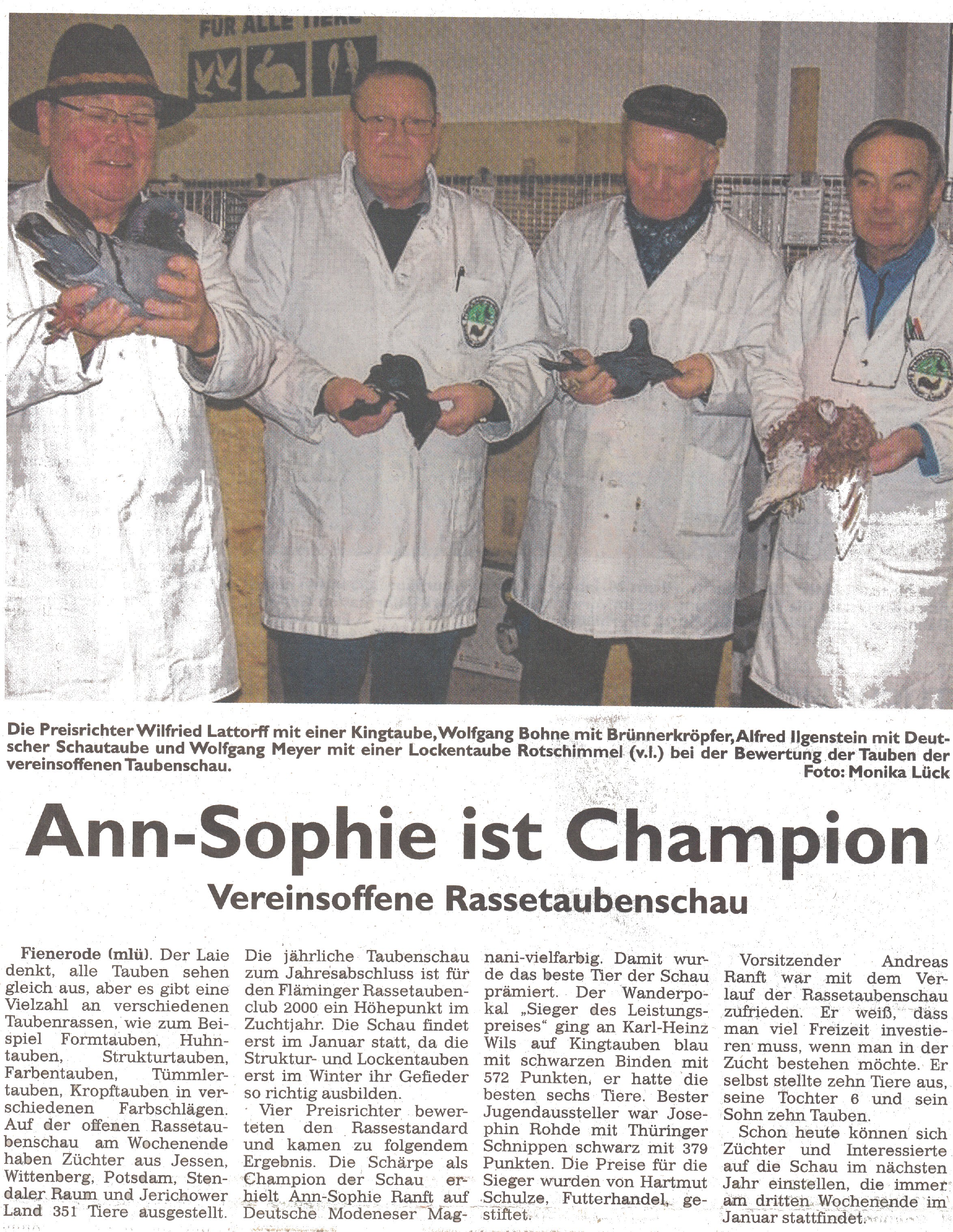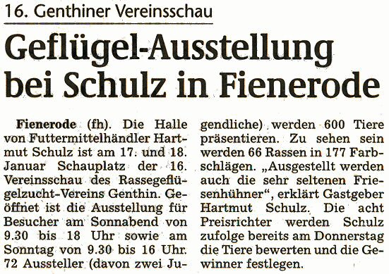 Geflügelausstellung Bericht vom 02. Januar 2009
