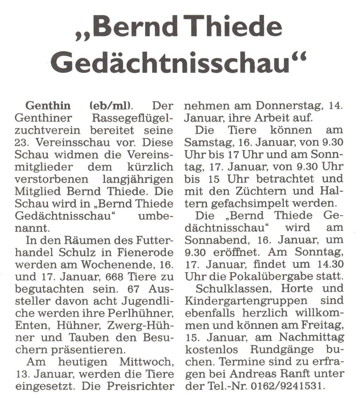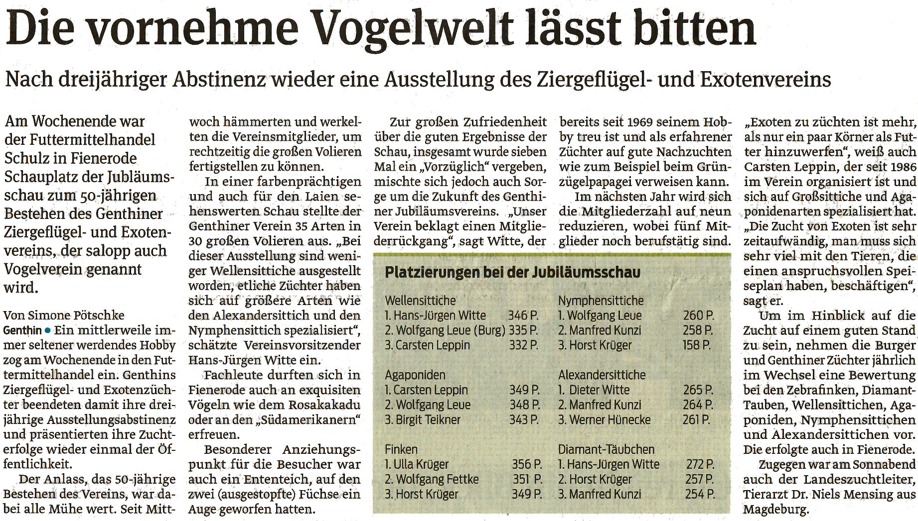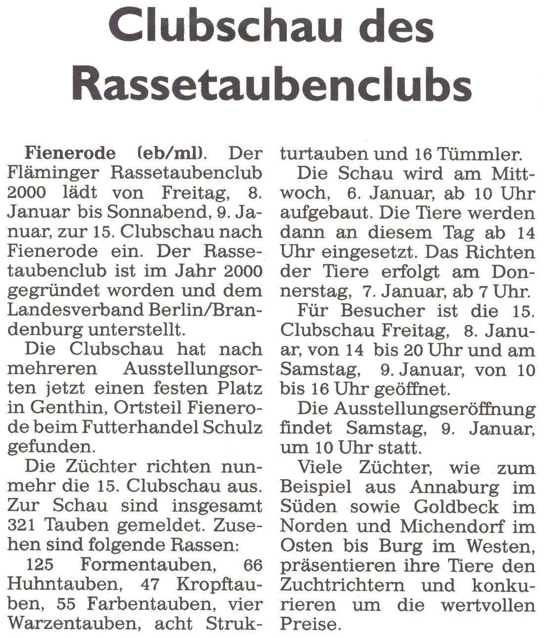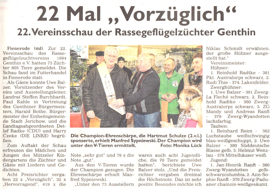 Geflügelausstellung Bericht vom 02. Januar 2009